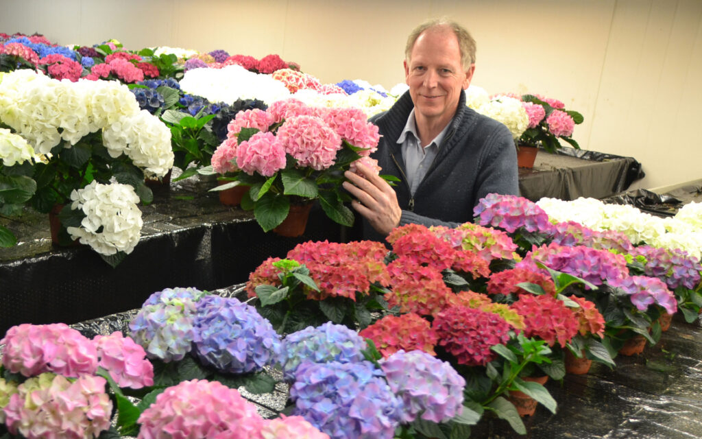 All plants have now been in the test room for three weeks that complies with the shelf life testing protocol. “That means that the hydrangeas here must stand for six weeks at 20⁰C under living room conditions,” Ten Brinke explains. During the shelf life tests, the focus is on how the flower sticks, a secondary aspect is coloring. Cultivation properties such as even flowering, susceptibility to botrytis and beautiful leaves were looked at at an earlier stage during earlier clone trials.
